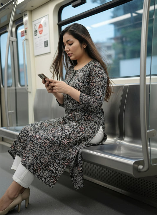 Black Ajrak Print Kurta