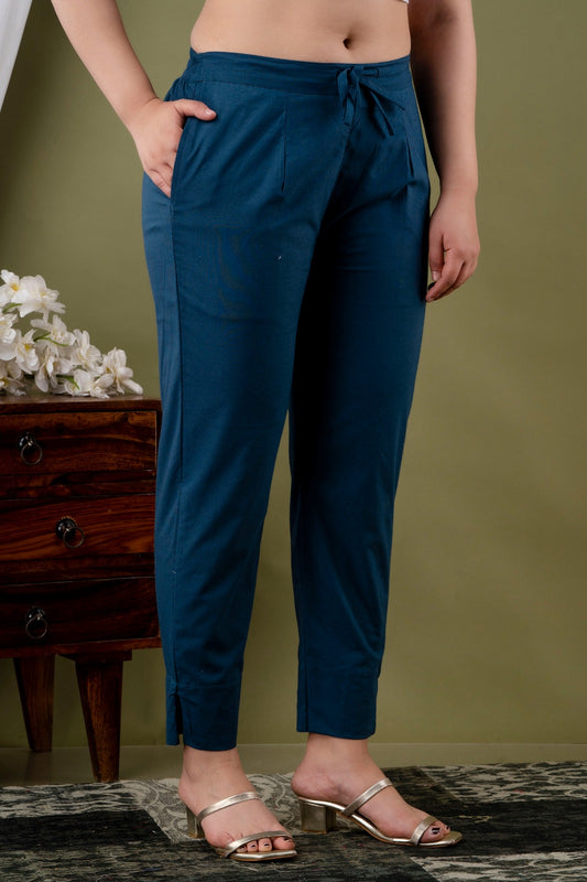 Dark Blue Cotton Straight Pant