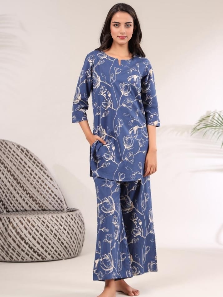 The Blue Geo Infy Coord Set is made from a wrinkle-free cotton blend, ensuring it stays crisp and neat throughout wear. The coordinating top and bottom feature a sleek blue color with a stylish white geometric print. Stay effortlessly stylish and comfortable with this versatile set.